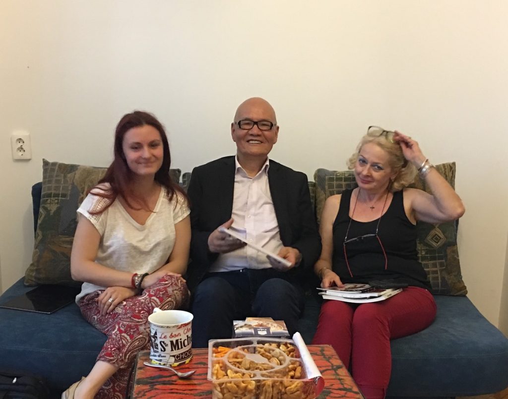 萨瓦辛是西部靠近匈牙利的一个小镇。这里的名胜除了国王米哈伊一世的冬季城堡外,就要算博巴的故居了。镇长知道我们要来,郑重其事地佩上绶带到门口迎接。我在博巴早年的油画中就认识这座乳黄色墙面的大房子。想不到在如此偏远地方出生成长的一个男孩,竟把他的故乡与万里之外的中国联系了起来。故居的两层楼中到处都能看到艺术家的中国回忆:画中戴乌毡帽的男人、穿戏服的女子;桌上的印章和文房四宝;挂在房梁上的官袍和蓑衣;各种角色的脸谱面具;以及一把孤零零靠在窗前的葵扇。我在一个镜框中泛黄的老照片上找到了自己。那是博巴夫妇与美院领导、油画系教师及油训班学员的合影。边上有潘院长的亲笔手迹:“中罗艺术长青留念”。