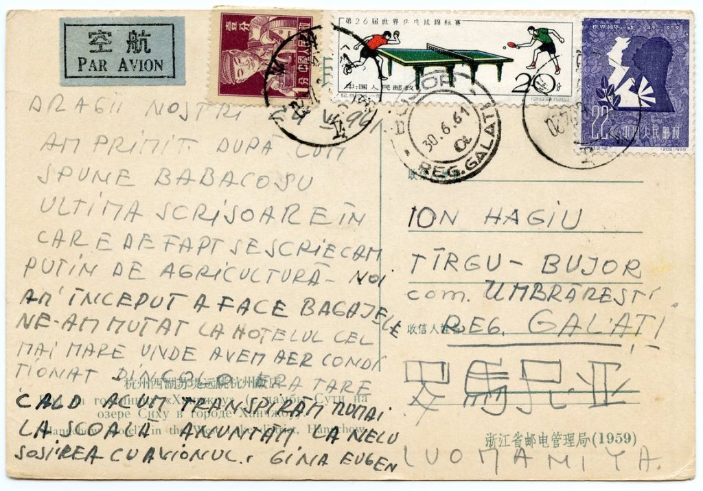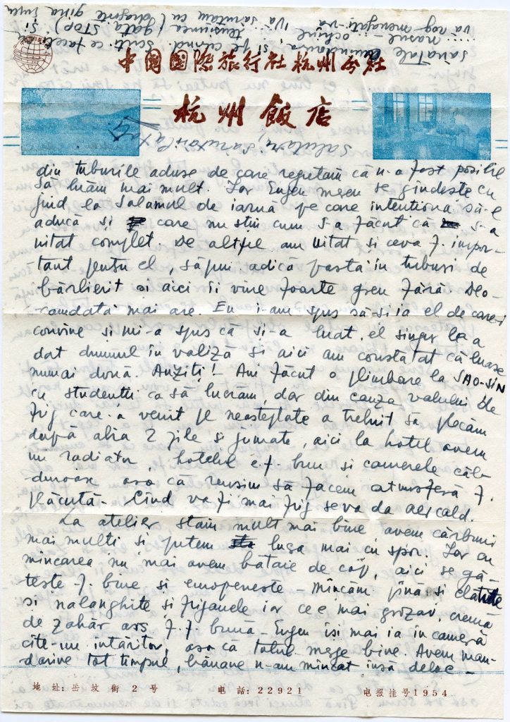 1960年11月11日,埃乌琴和琪娜在杭州华侨饭店又冷又潮的房间里给远在布加勒斯特的家人写信:“我们把每件事都写下来,因为我们觉得非常孤单,我们也太‘天真’了”。